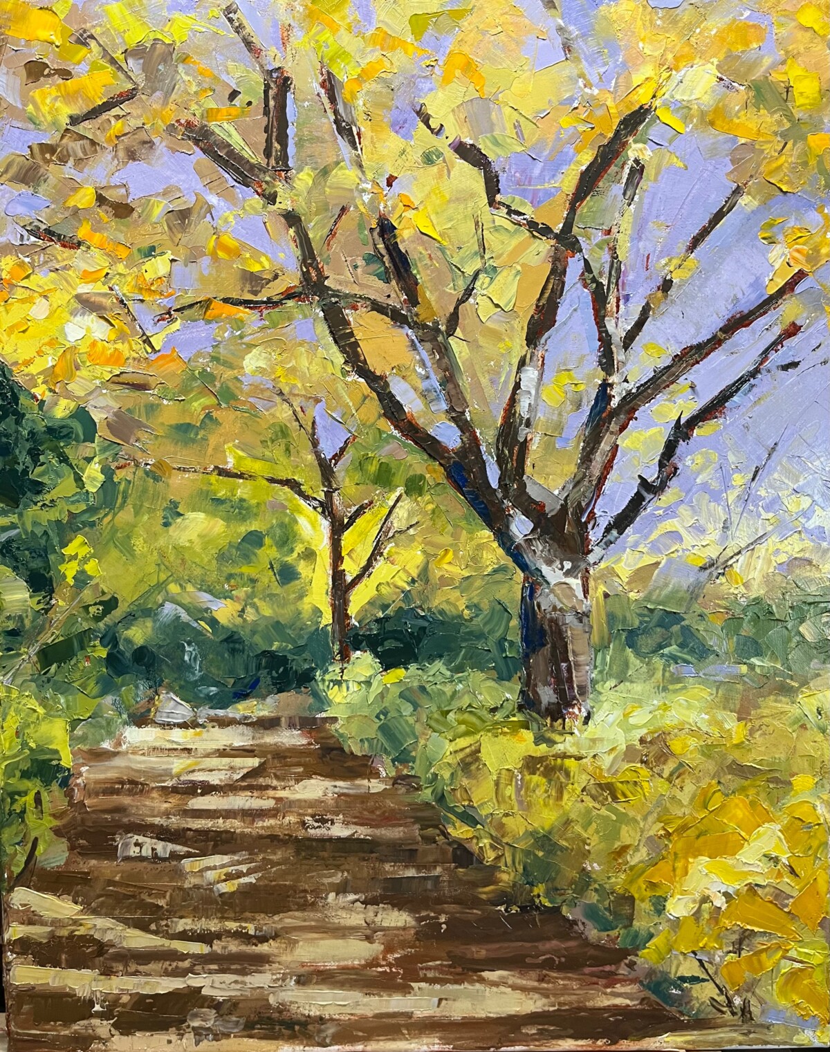 Original Oil Painting on Canvas by RB Anderson (RBA) of autumn colors along a path that winds through Boyce Thompson Arboretum in Arizona.